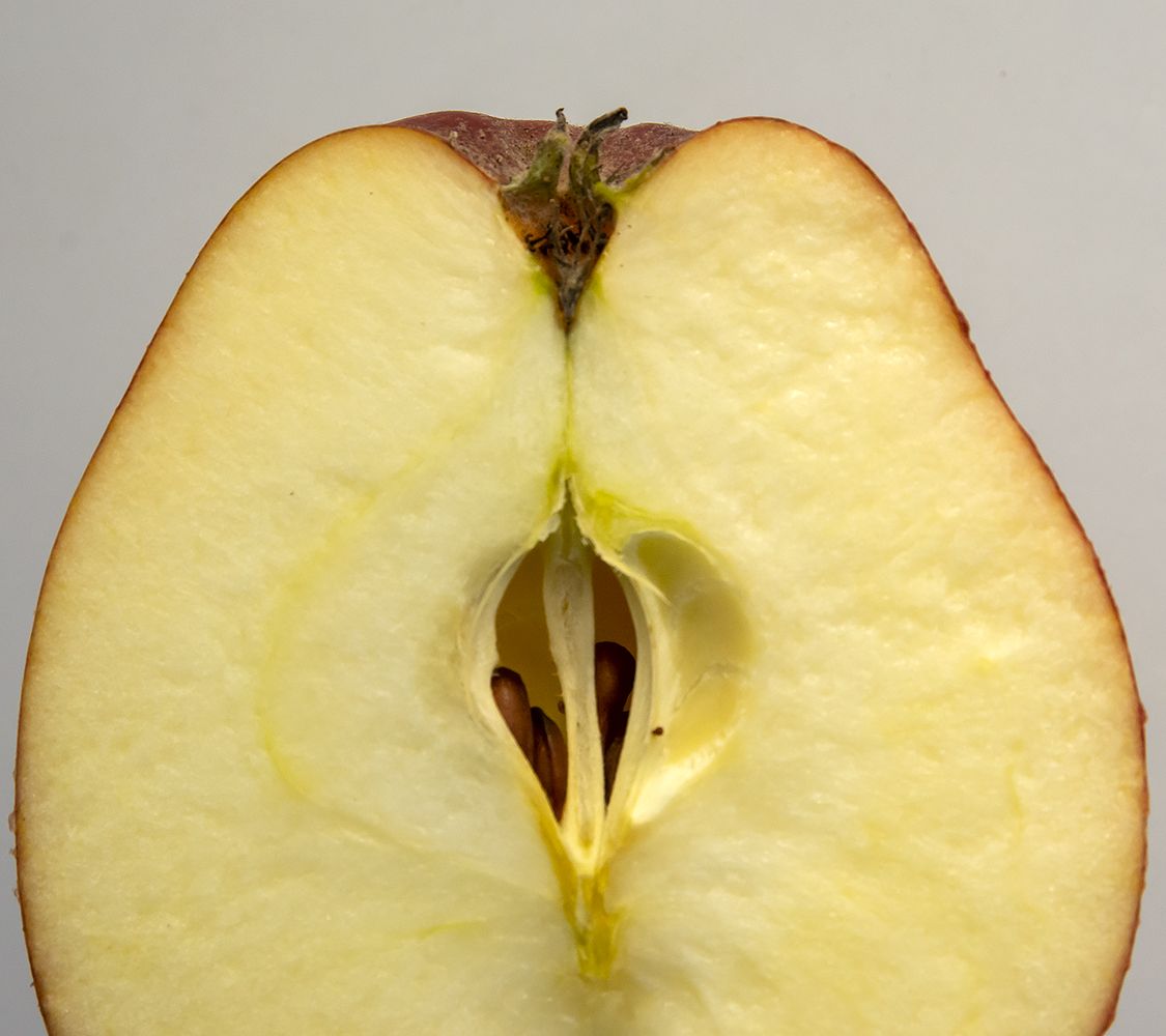 Jeg har sammenlignet æblet med beskrivelser af Adams Pearmain i Æblenøglen, af Anton Pedersen og H. C. Bredsted. Jeg har ikke fundet noget, der udelukker at æblet er Adams Pearmain.