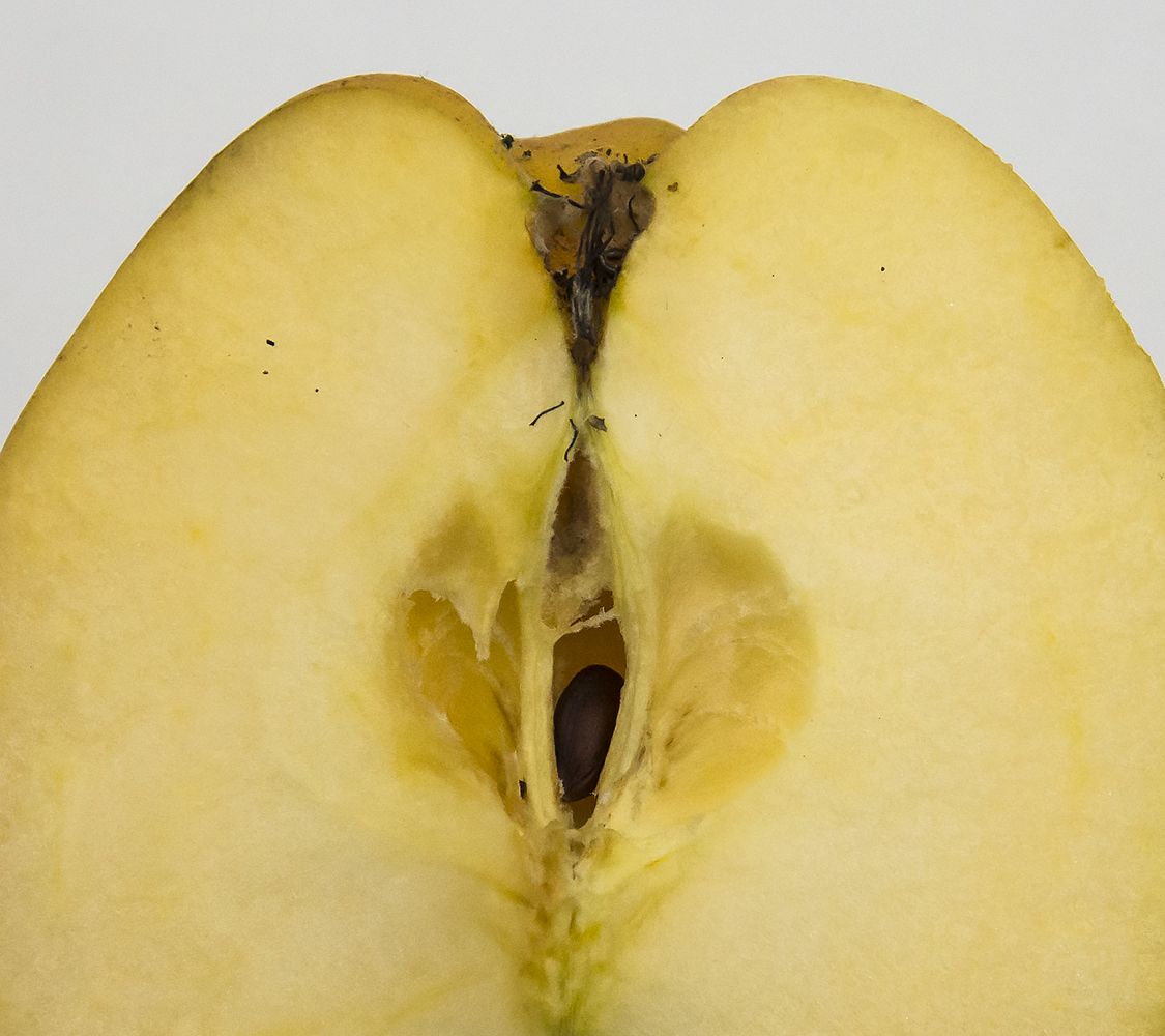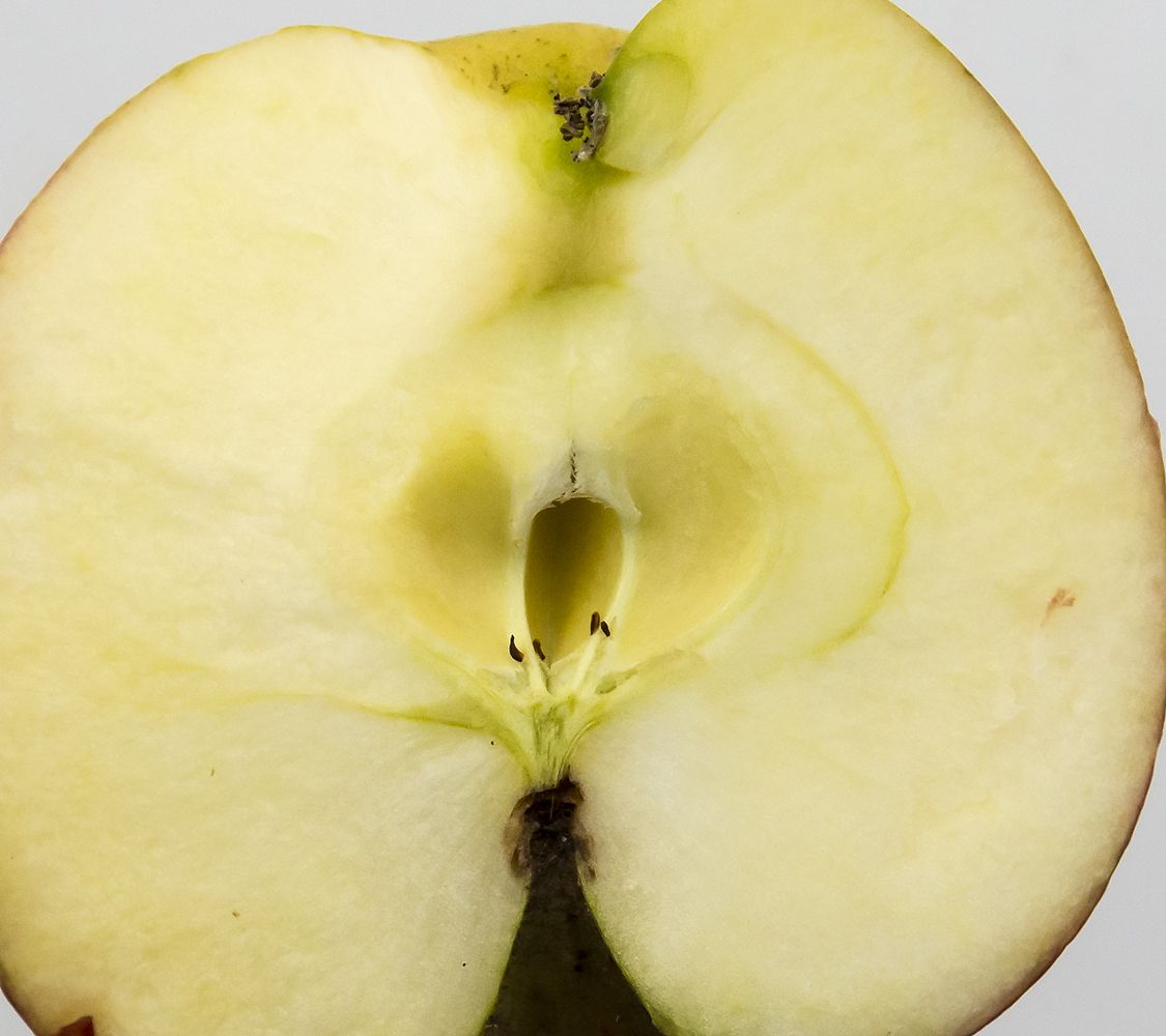 Kærnehuset er stort, ovalt til tenformet. Kamrene er helt åbne, store og tilspidsede. |