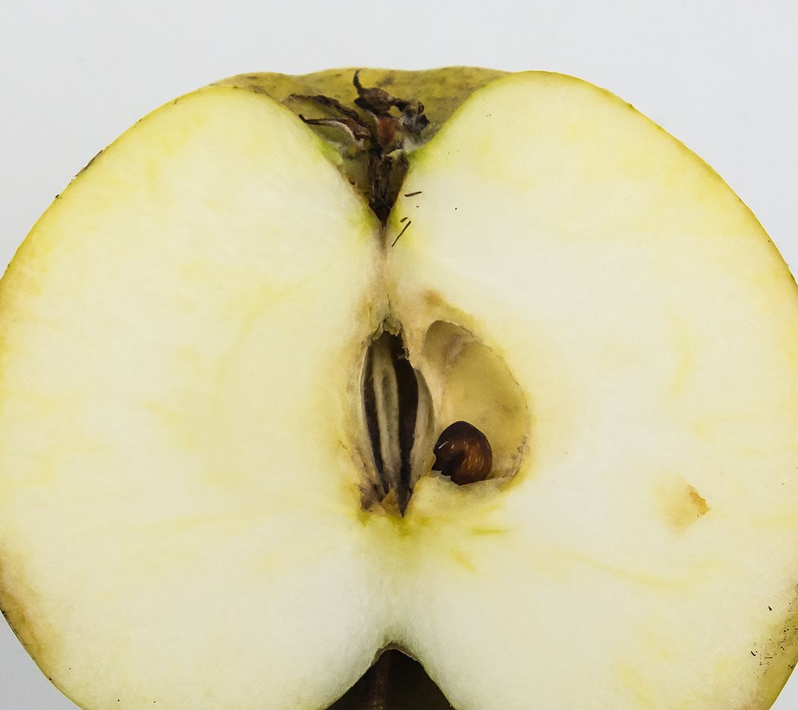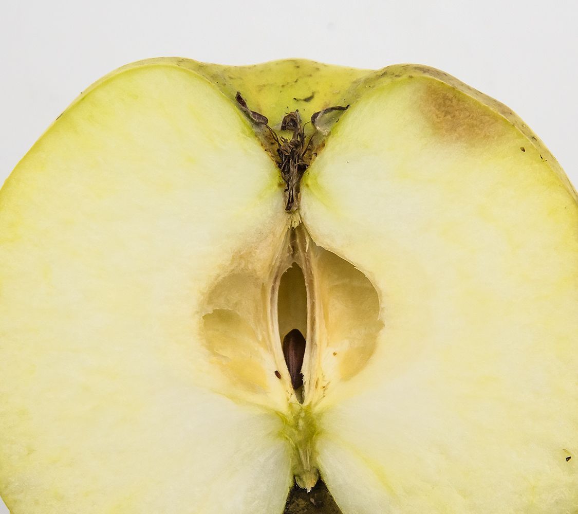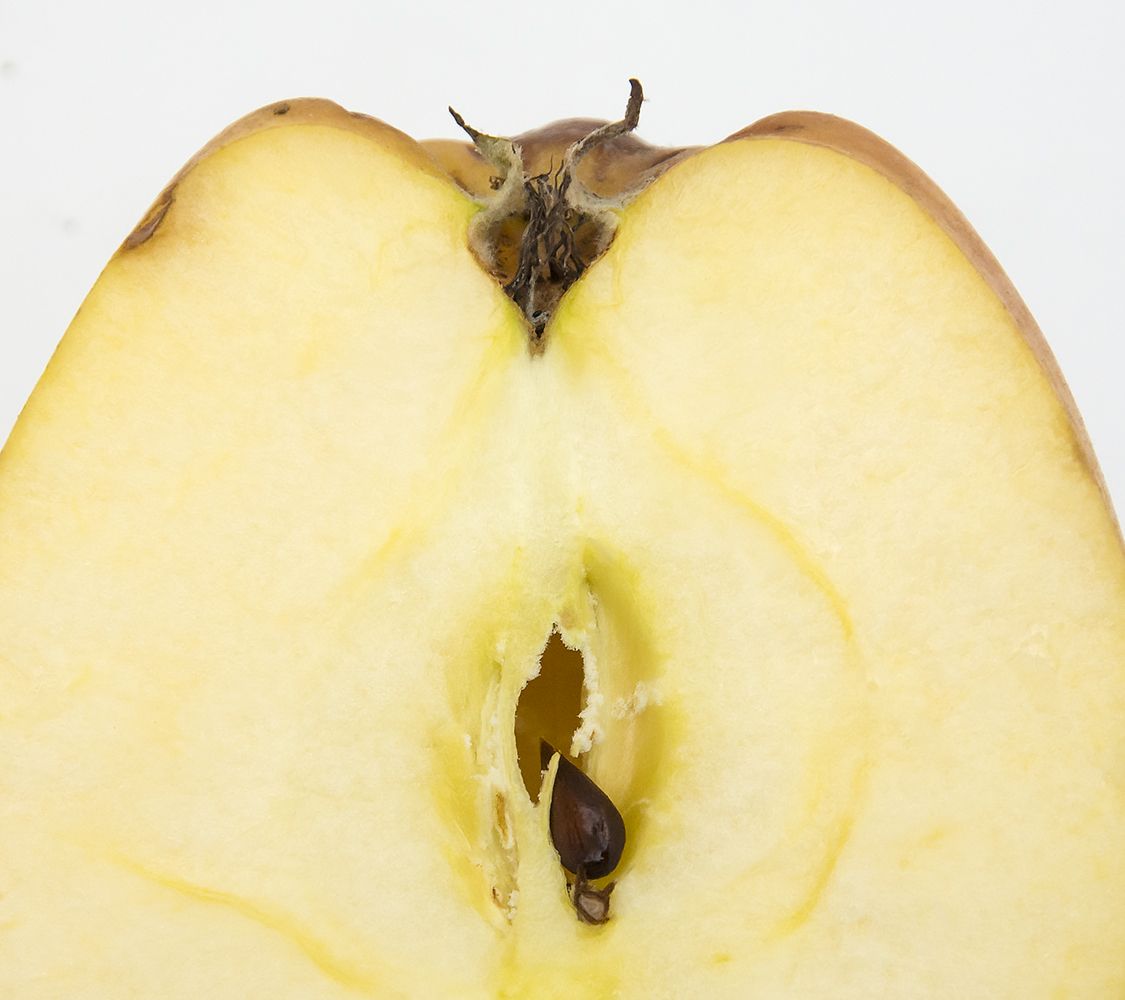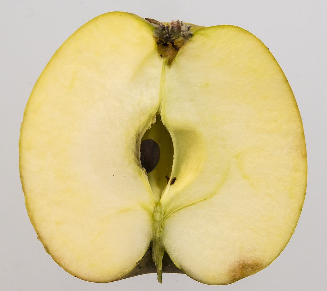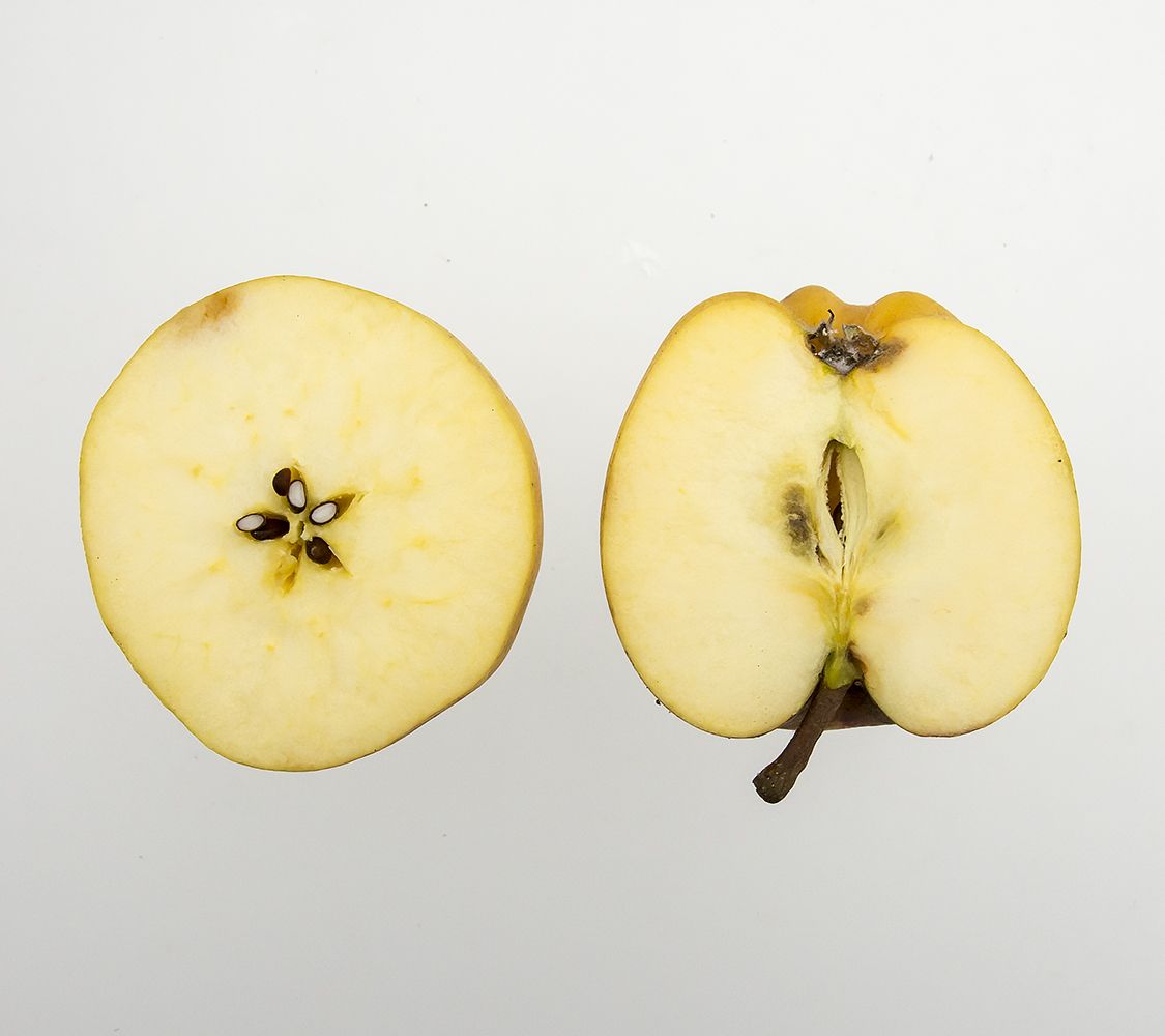 Hvid Vinter Kalvil har ikke altid den dybe tragt, som er vist på illustrationen.