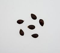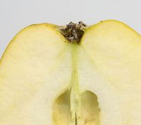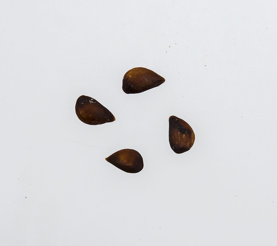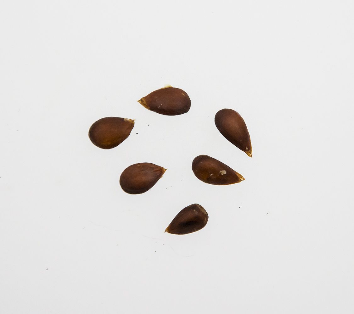 Kærnerne er fåtallige, brune, runde og spidse. |