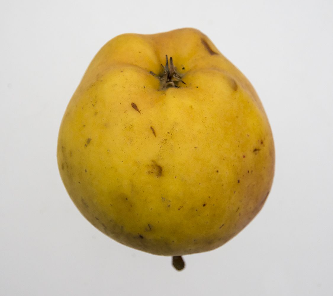 Frugtstilk: c. 20 mm. lang, fra Espaliertræer ofte længere, tynd, træagtig, grønlig og brunlig, uldet, indleddet i en meget dyb, ofte bred, med flere eller færre brune Ruststråler beklædt Stilkgrube. |