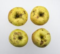 Kød: hvidt med grønlig Tone, saftigt, vinsyrligt. — Modningstid: November til langt hen på Vinteren.