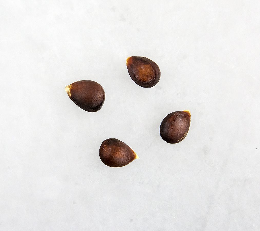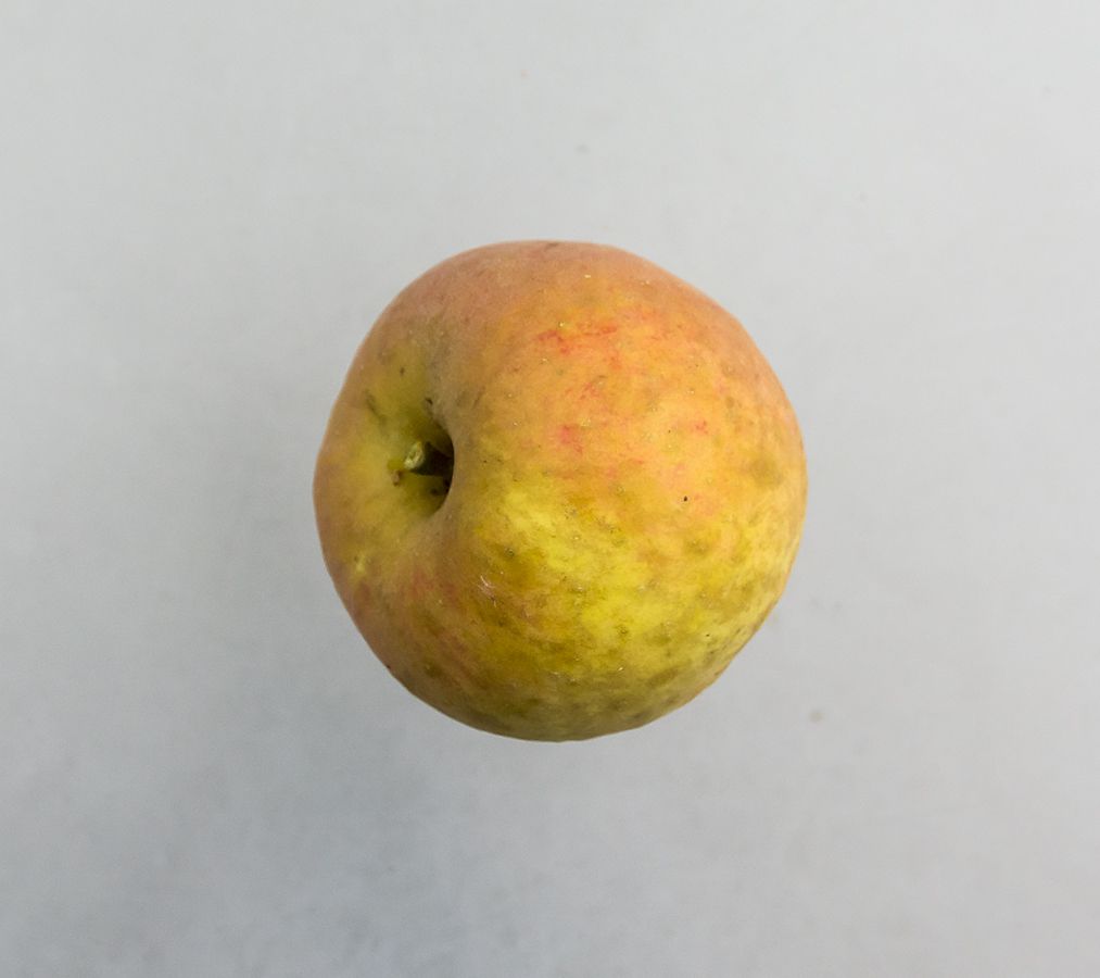 Frugten er lille, fladrund og ganske smuk. Grundfarven er græsgrøn. Dækfarven går imod orange-rød med striber af mørkerødt. Kødet er grønligt med grønne årer. Det er fast, tæt og saftigt med en sødmefuld, meget aromatisk og fyldig smag.