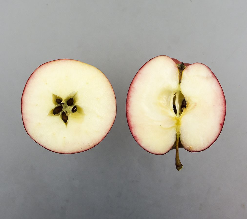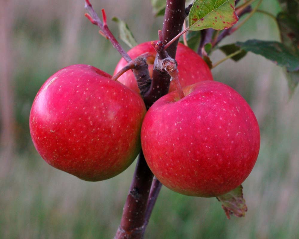 The apples are medium to large, round and beautiful with a red sunny side, very firm even after some time of storage. The apple is tart / sweet, juicy and crisp. The eating quality is rated very high.