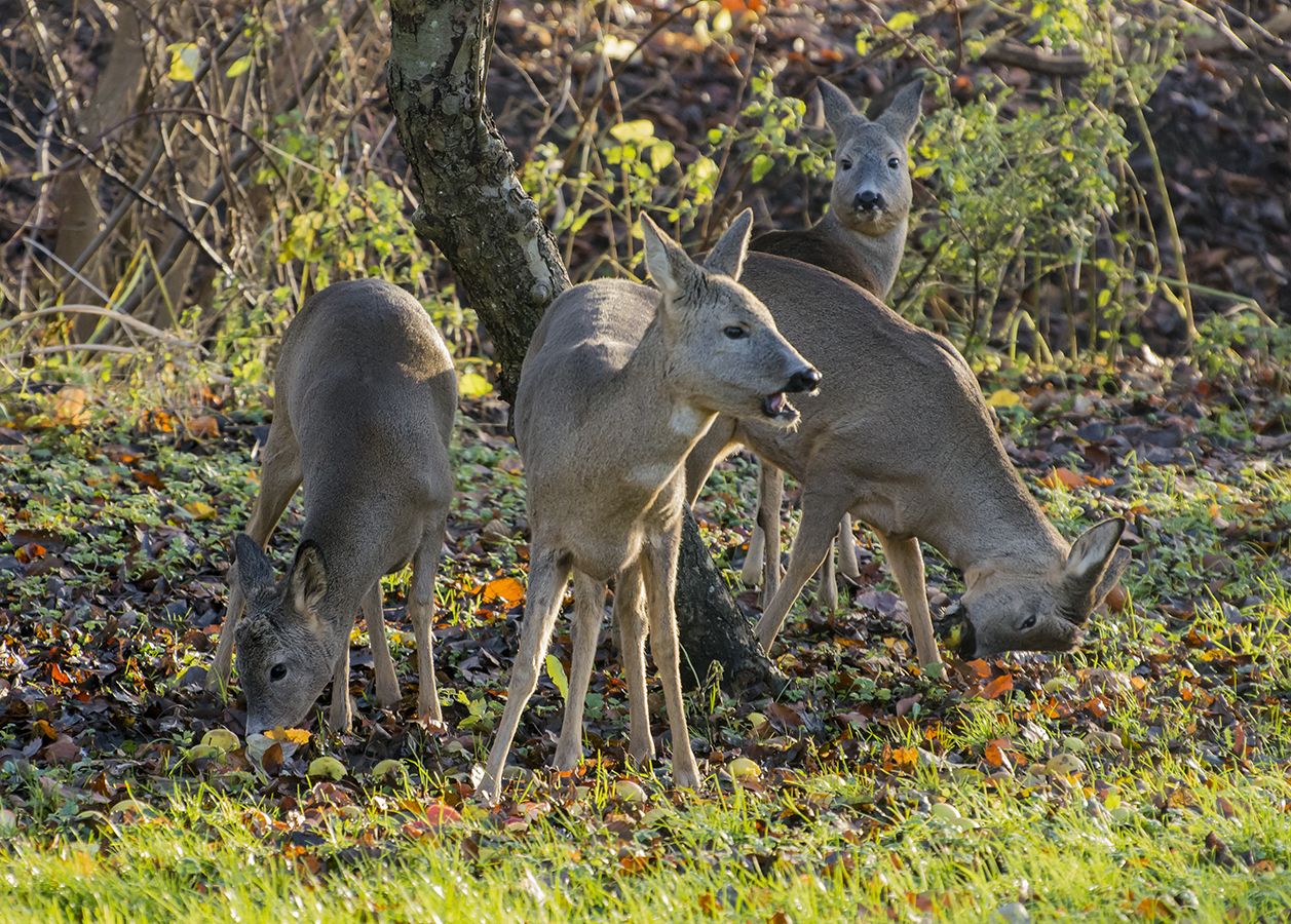 Rådyr nyder æblerne i det sene efterår