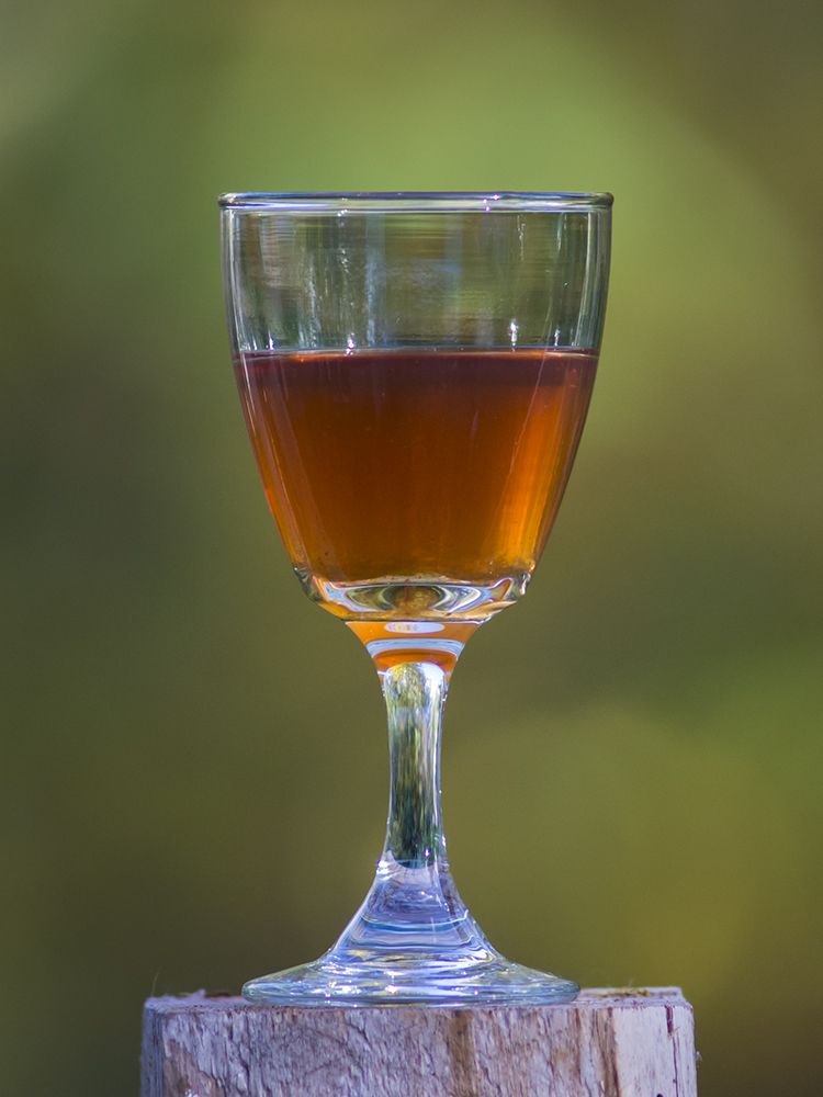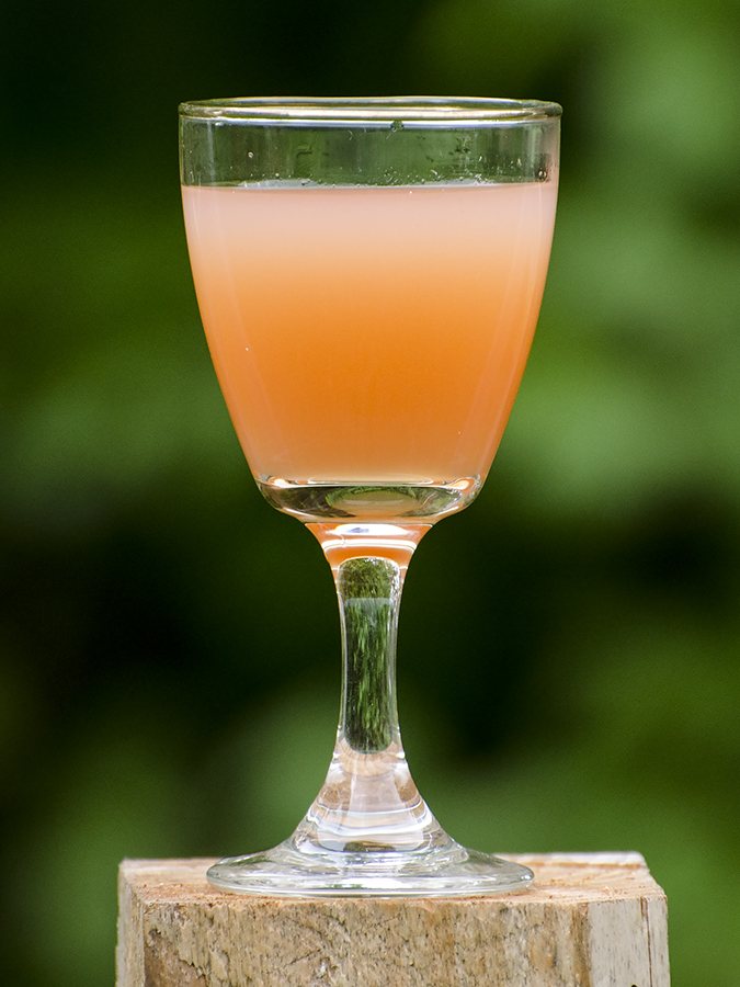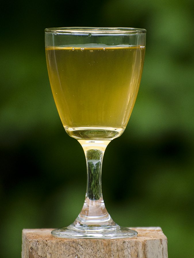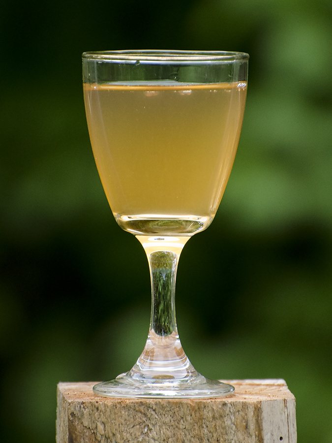 Snapsen på billedet herover er lavet på pigeonæbler og lidt slåenbær, der har fået frost. Den har trukket et lille år og er rigtig god nu. Forsøg med æblesnaps på cideræbler 2017.