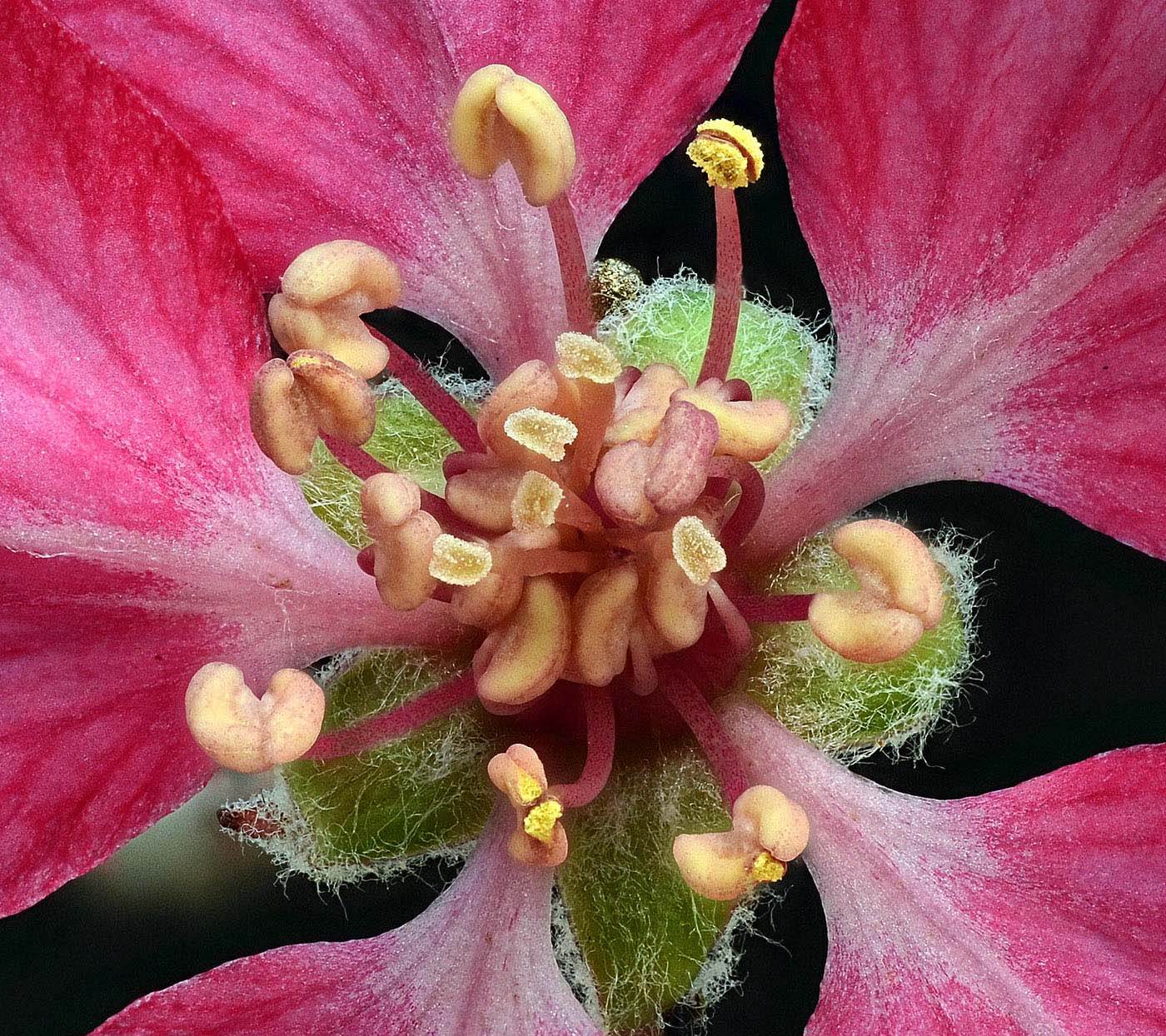 Støvknap fra æbleblomst med pollen på vej ud af pollensækken.