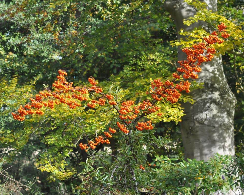 Træer med bær, nødder, stenfrugter og lignende giver gode fourageringsmuligheder for mange fuglearter. Plant fx hvidtjørn, sargents æble, liguster, alm. hyld, alm. røn, fuglekirsebær, alm. hæg, benved, kristtorn, mistelten, taks, hassel, eg, bøg, rød el og birk.