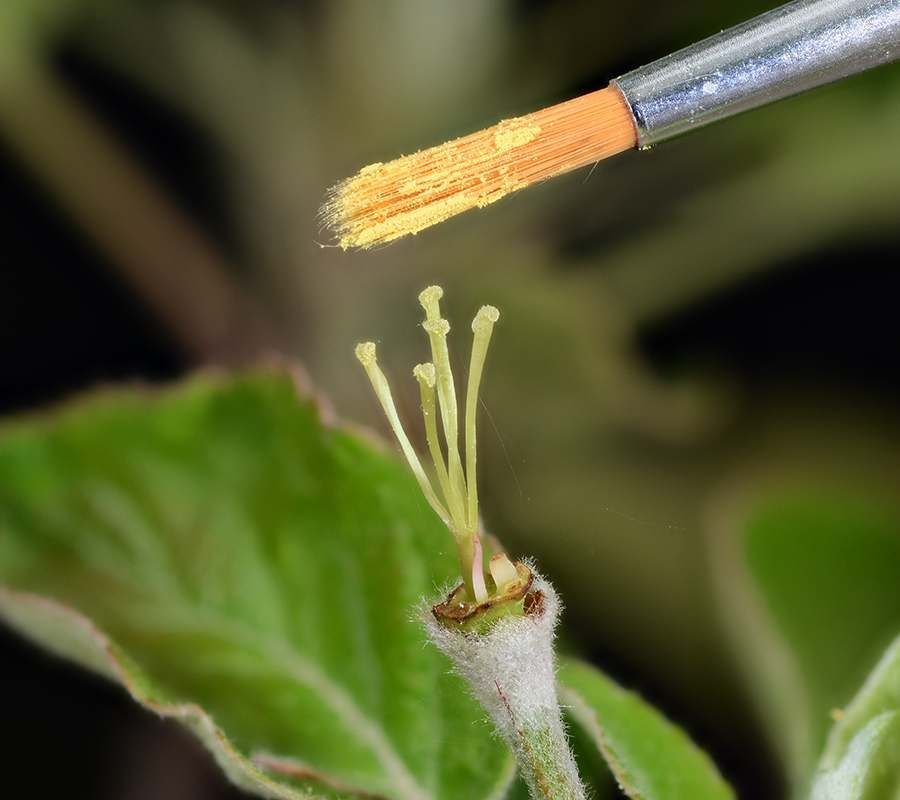 Fra den ønskede fadersort indsamles støvknapper fra æbleblomster. De tørres et par dage ved ca. 20 grader, hvorved frøknapperne åbner sig og frigiver pollen.